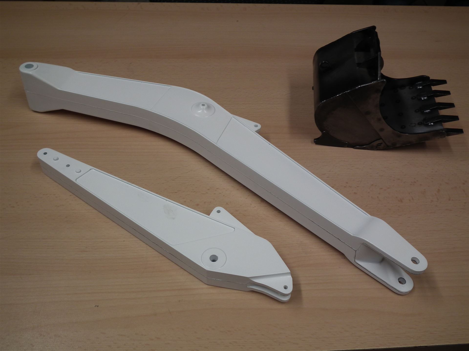 Im Lieferumfang enthalten, sind alle zum Bau erforderlichen Komponenten (Hydraulik, Antriebe usw. siehe Galerie Bausatzinhalt), sowie zwei Hydraulikzusatzanschlüsse am Stiel inkl. Steuerventile und ein Löffel.