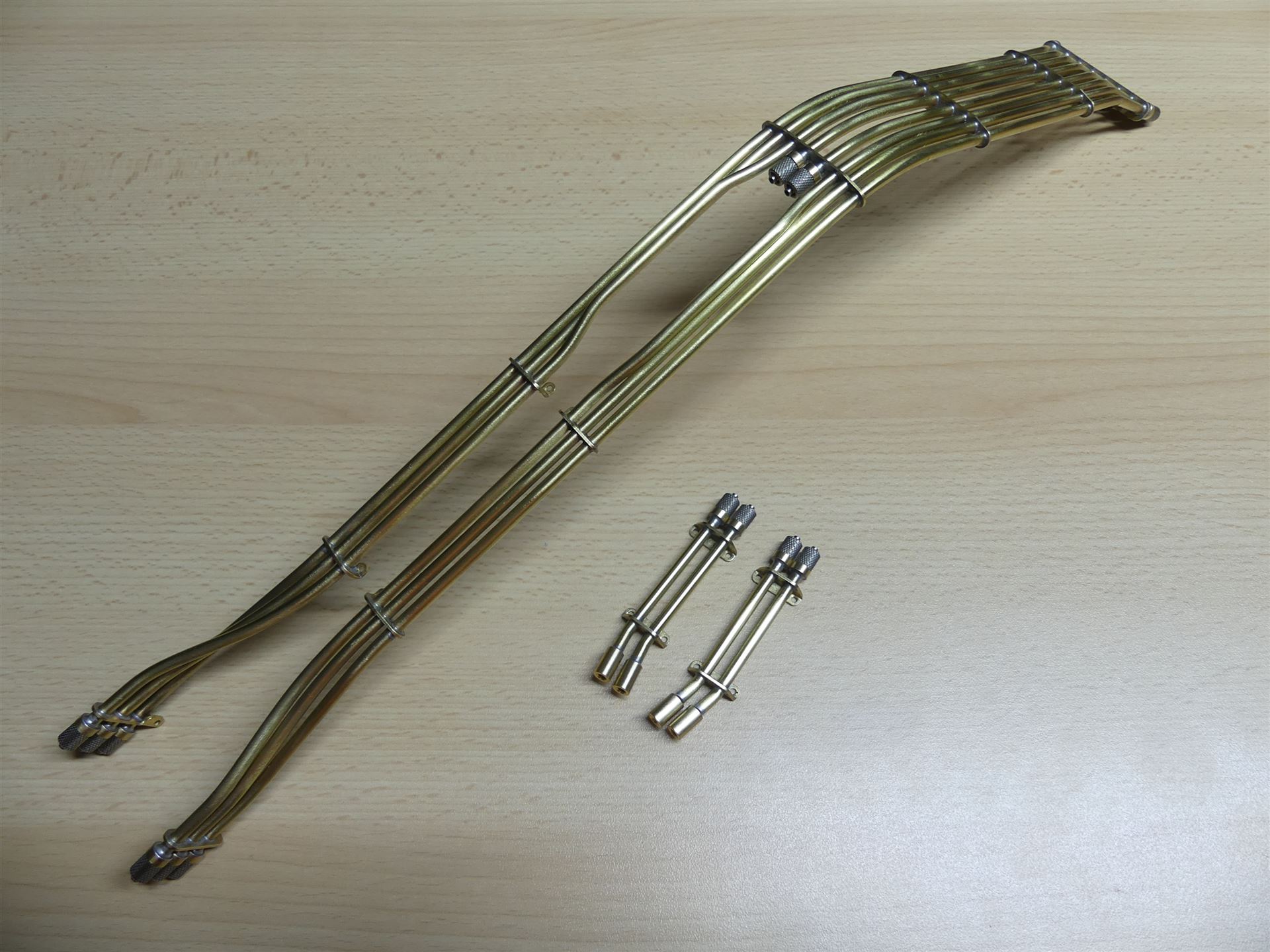 Der Bausatz des Komatsu PC490-11 wird inklusive der Hydraulikkomponenten mit einem 5-fach Ventilblock und zwei Hydraulikzusatzanschlüssen am Stiel ausgeliefert.