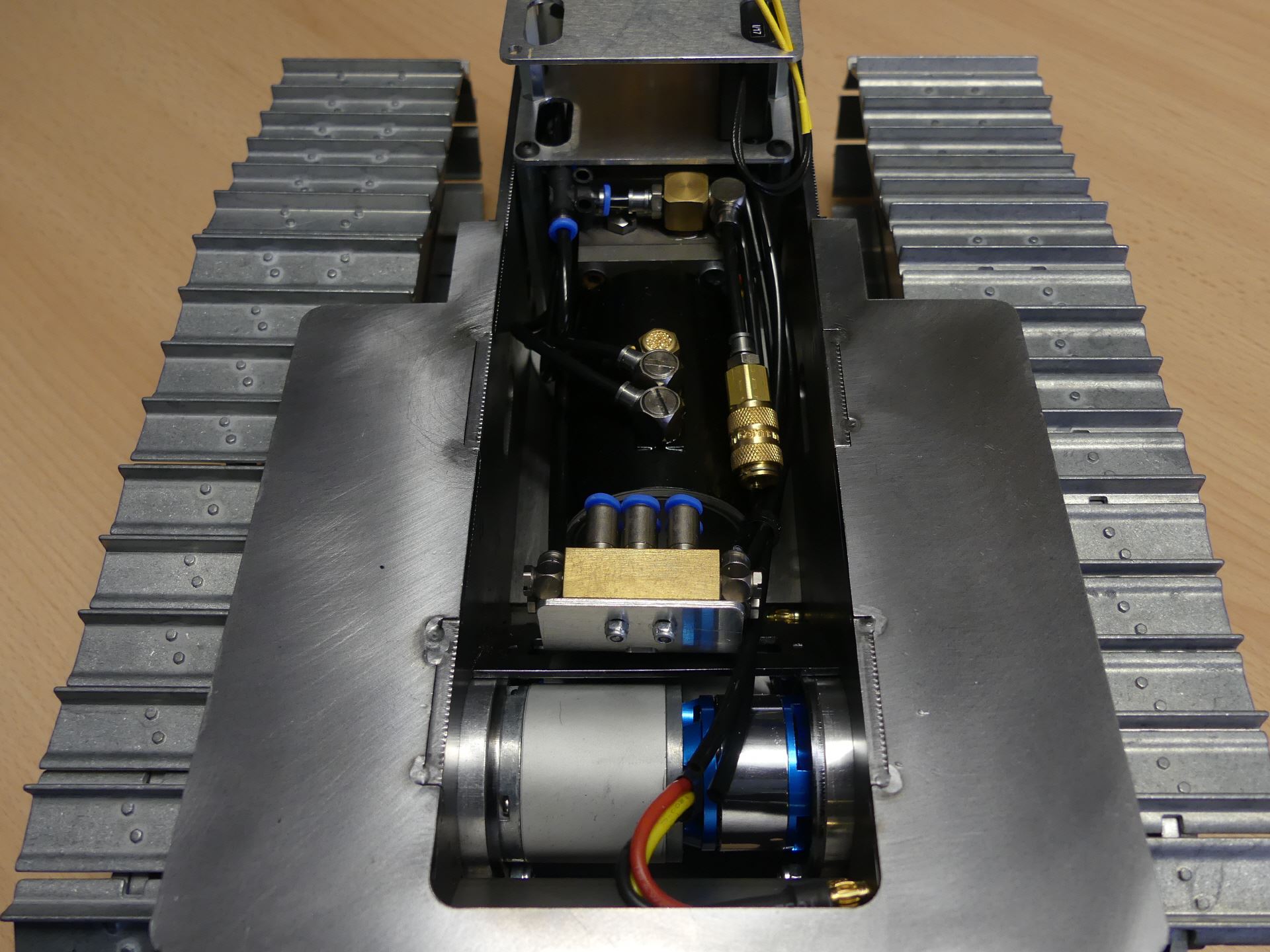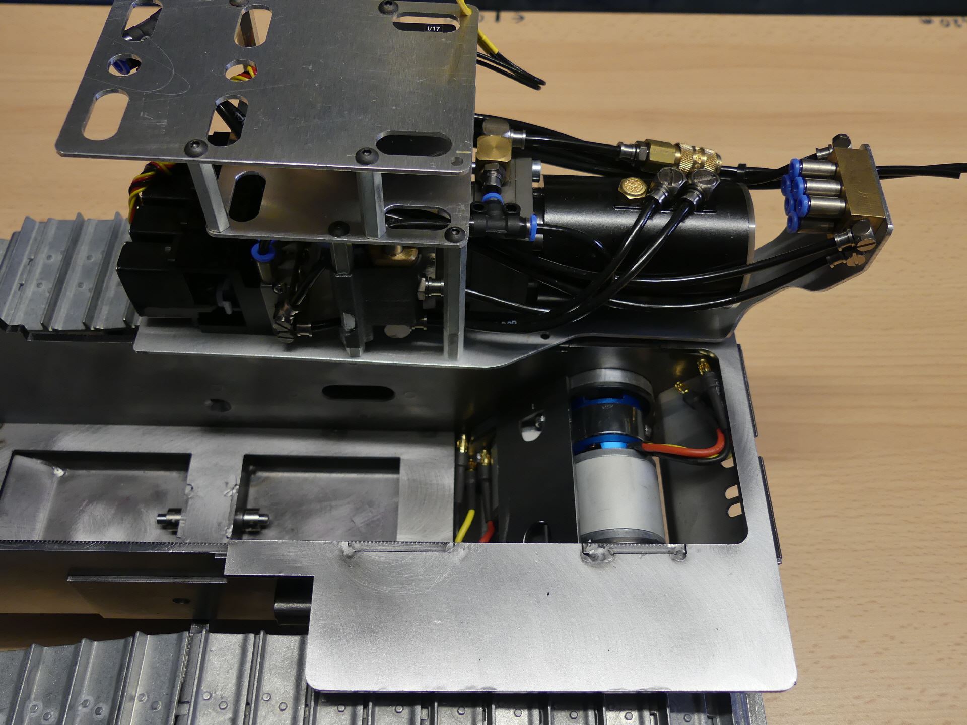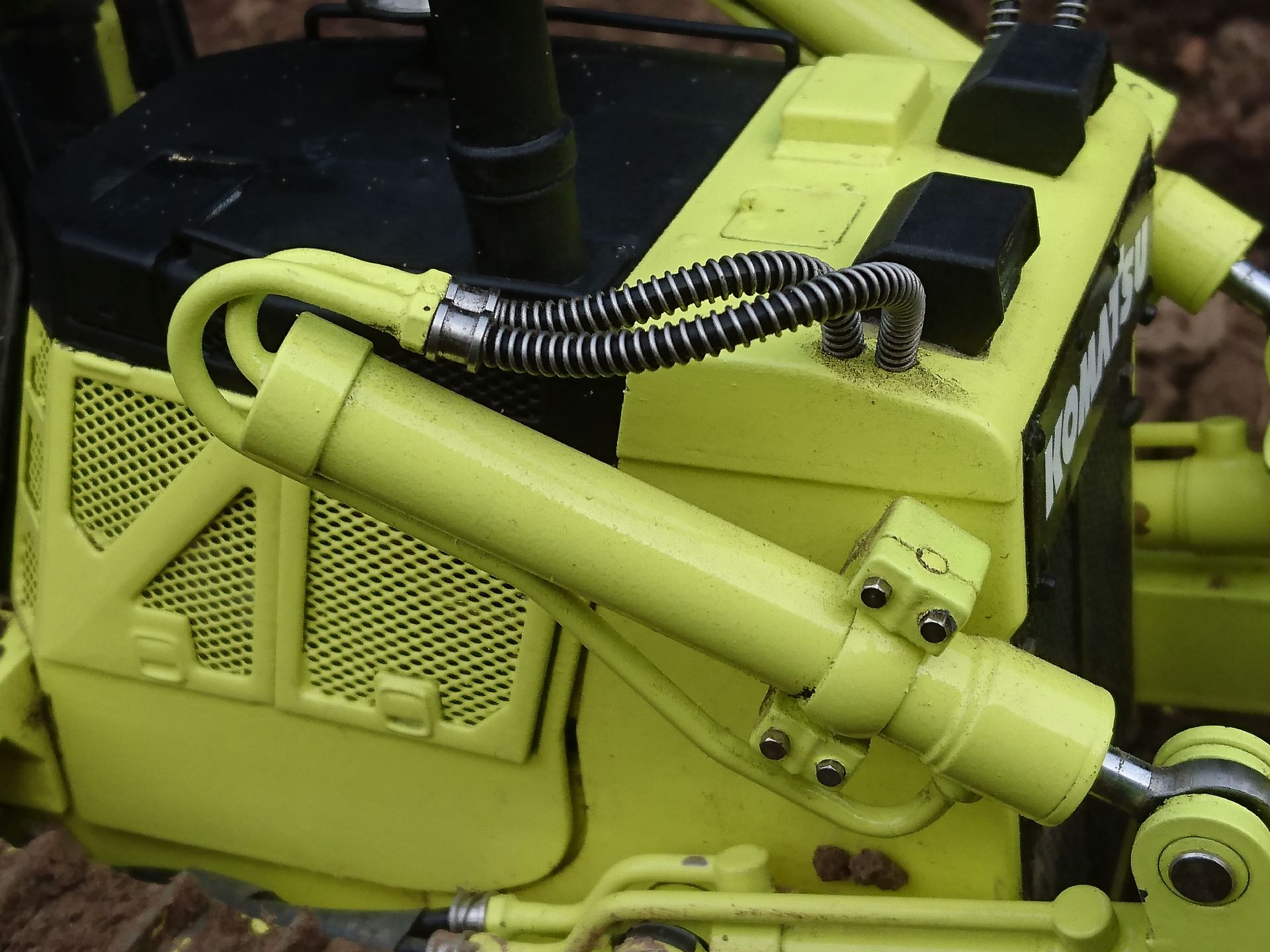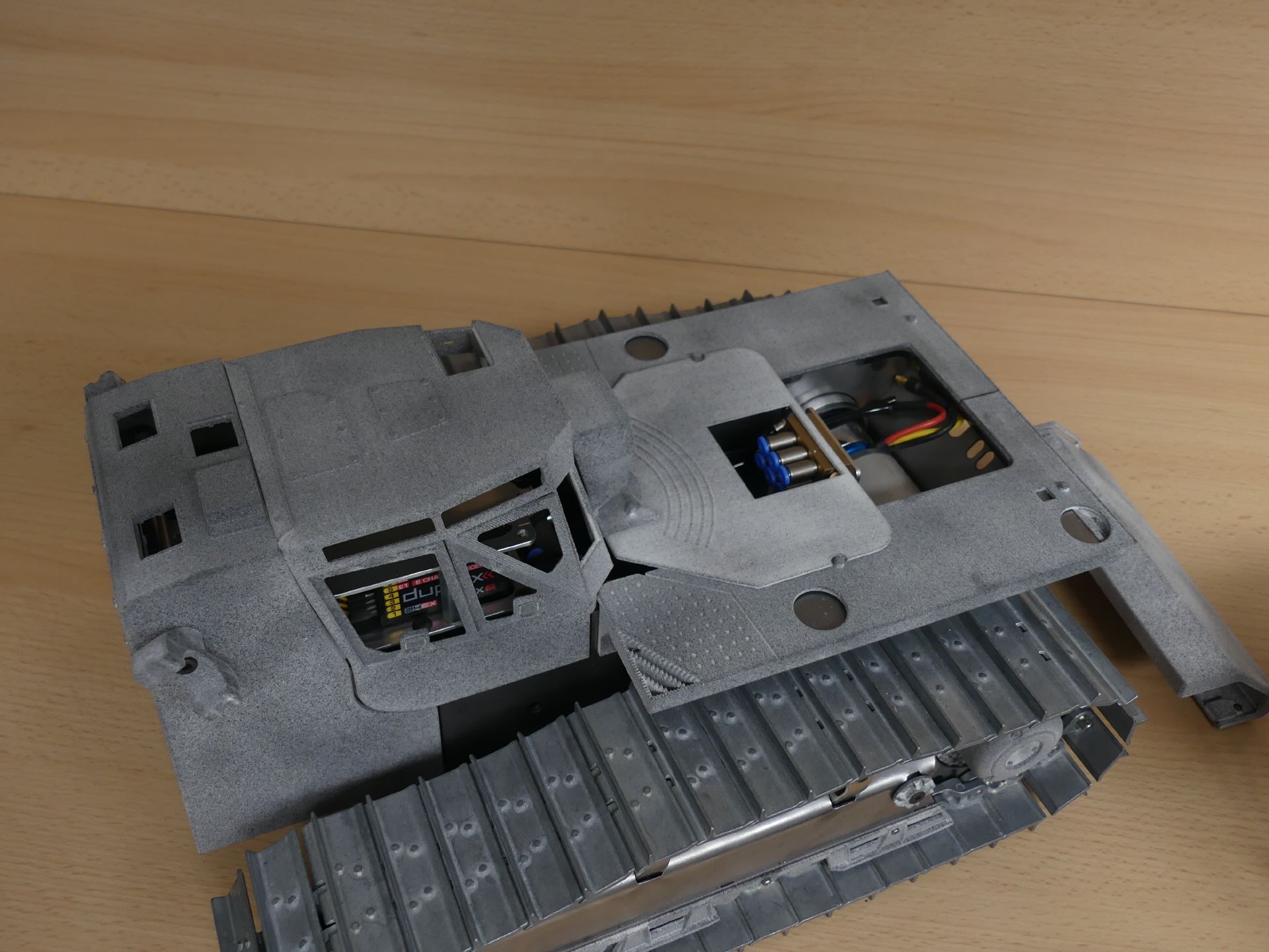Aber auch "unter der Haube" hat sich einiges getan. Die Hydraulikeinheit wurde komplett neu entworfen, ist nun viel kompakter und bietet auf den RC-Decks reichlich Platz für die Fernsteuerkomponenten und Soundmodul. Auch für den Einbau des Lautsprechers ist direkt hinter dem Kühlergrill ein Platz vorgesehen.