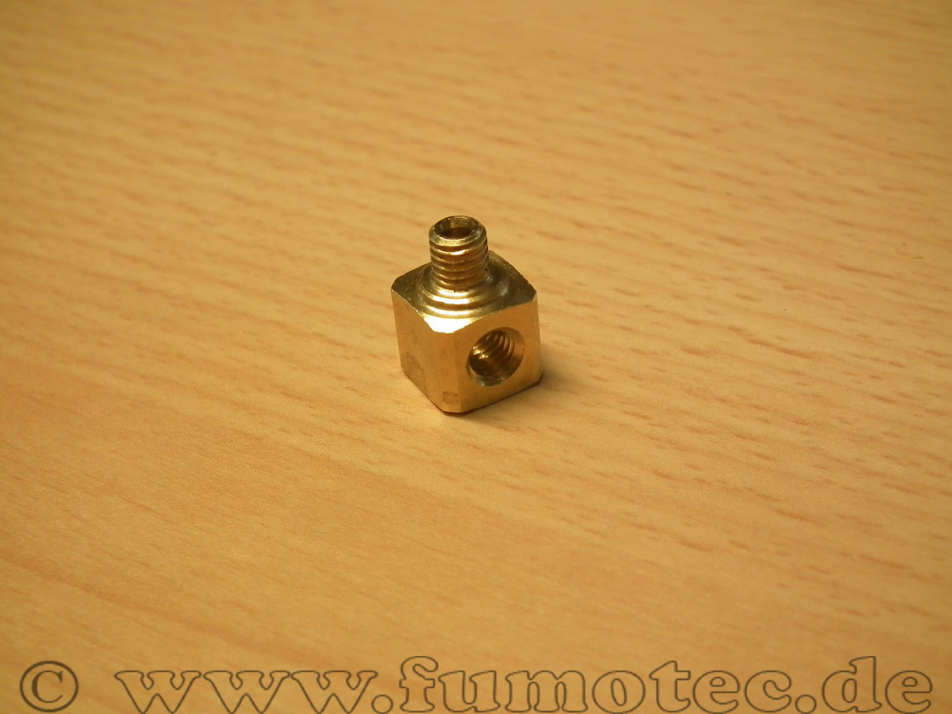 Technische Daten: M5 x 5mm Außengewinde, 2 x M5 Innengewinde, Maße: 10x10x10mm