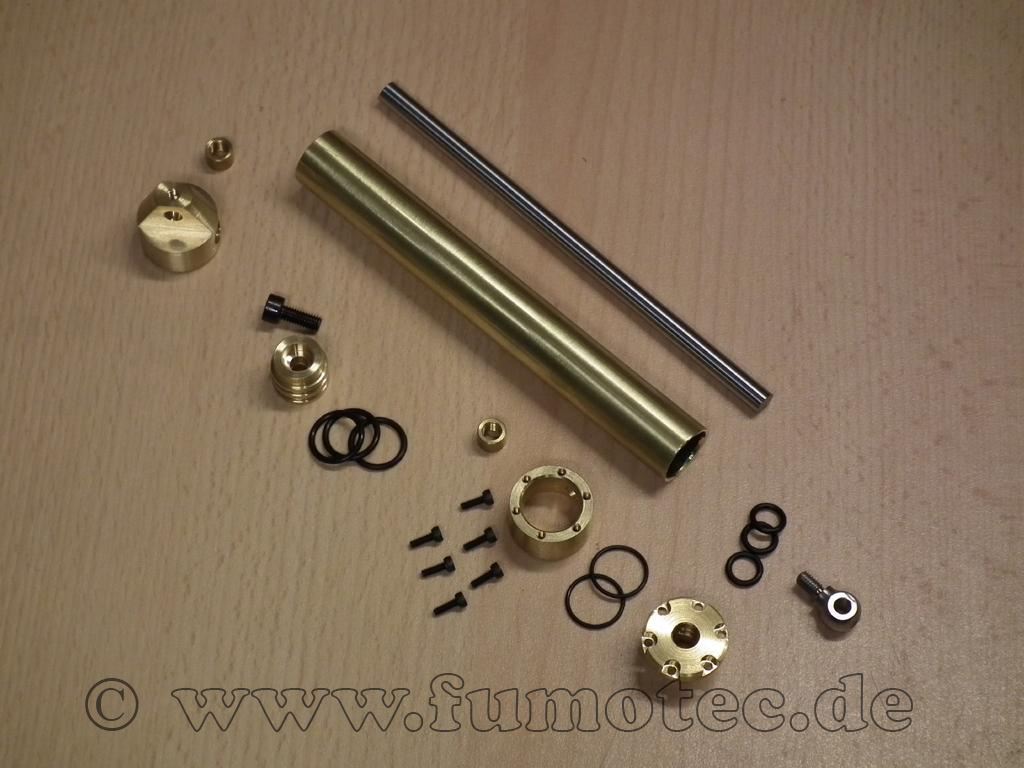 Ein Standard-Teilesatz für einen Zylinder mit 16mm Zylinderrohr ( Teile müssen abgelängt und Gewinde geschnitten werden)
