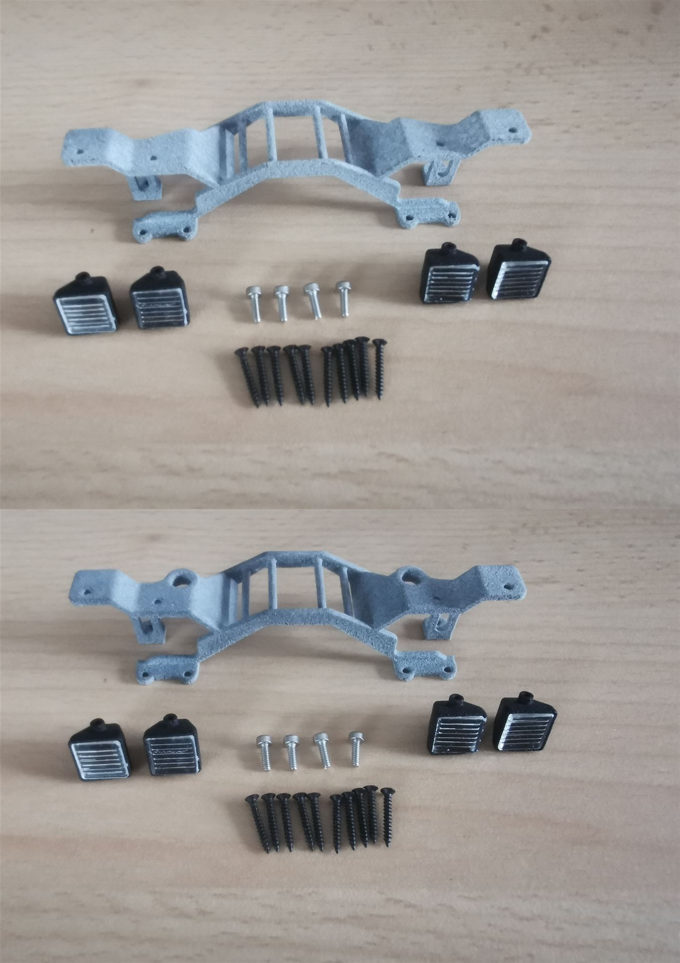 Lampenbügelset bestehend aus 710-95 und 710-96 mit 8 Scheinwerfergehäusen zur Montage von SMD LED´s (nicht im Lieferumfang enthalten). Zur Verwendung als Dachlampenbügel auf unserer Planierraupe D71-24 oder anderen Modellen.