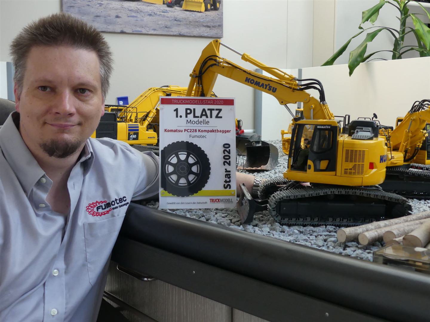 Bei der Wahl zum TruckModell-Star 2020 hat Fumotec mit dem Kurzheckbagger Komatsu PC228 in der Kategorie "Modelle" den 1. Platz belegt.