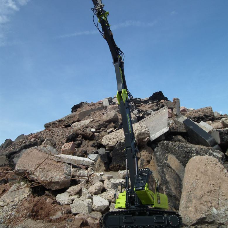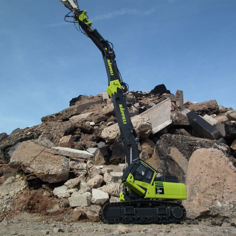 Der PC490MRD basiert dabei auf dem bewährten PC490 und wurde entsprechend mit einer kippbaren Kabine und dem speziellen Abbruch-Steckkausleger ausgerüstet. Im Lieferumfang ist ein 6-fach Ventilblock enthalten.