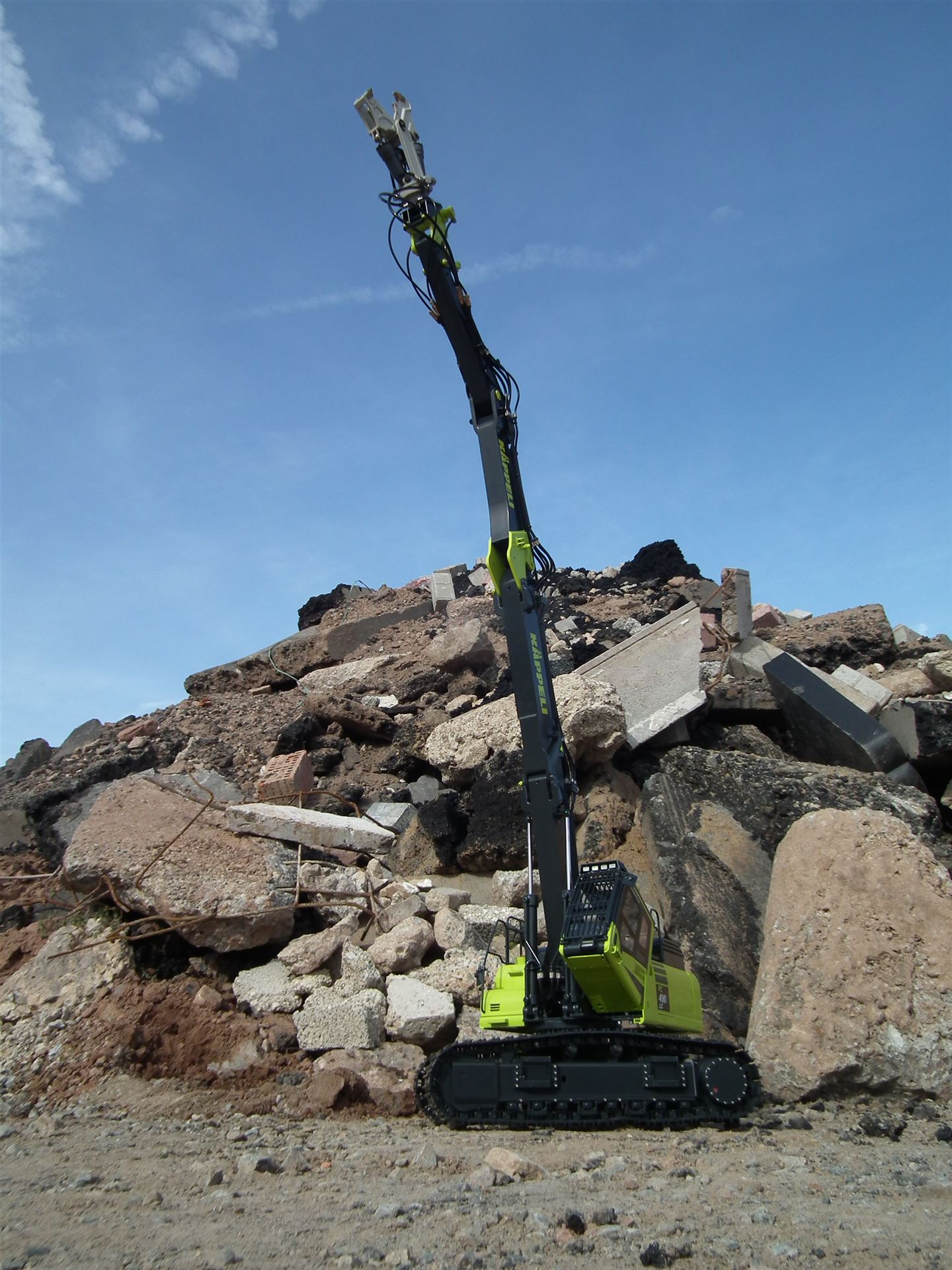 Der PC490MRD basiert dabei auf dem bewährten PC490 und wurde entsprechend mit einer kippbaren Kabine und dem speziellen Abbruch-Steckkausleger ausgerüstet. Im Lieferumfang ist ein 6-fach Ventilblock enthalten.